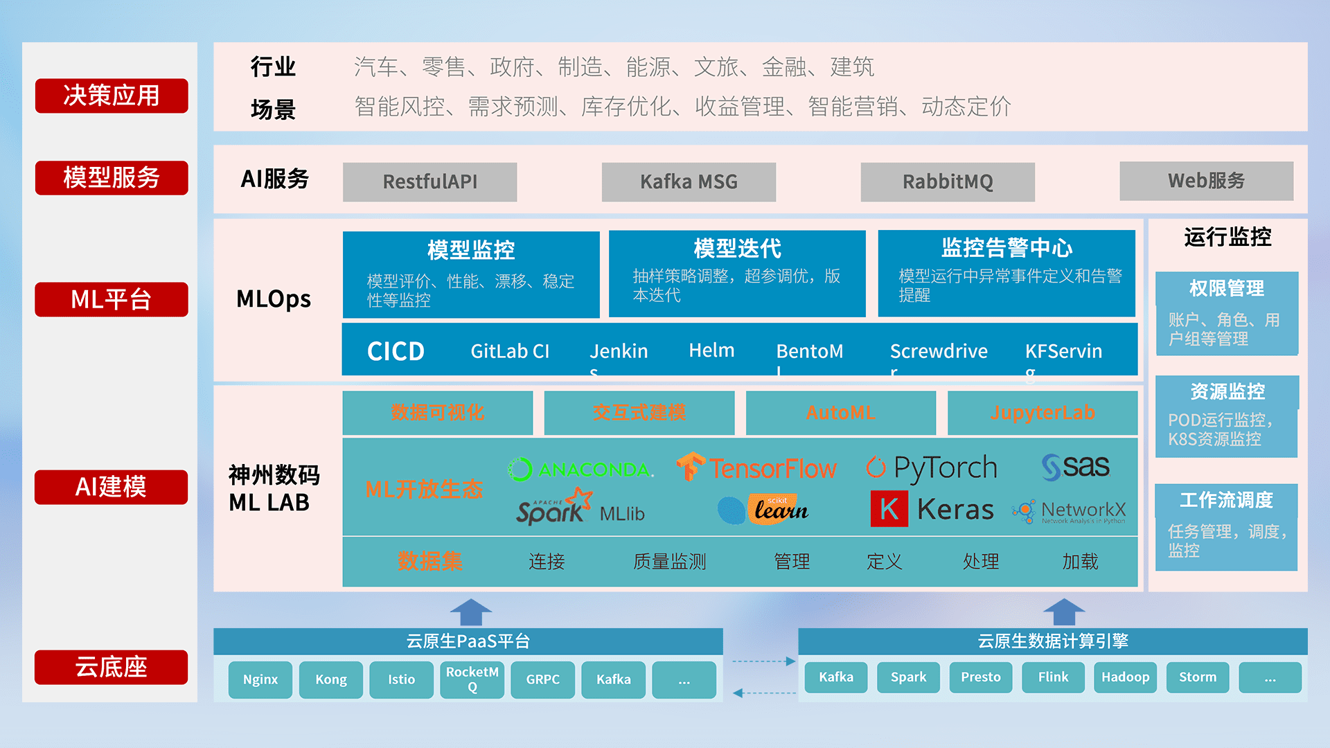数据+模型双引擎驱动,,,,面向智能服务场景,,,,快速灵活利用AI技术,,,支持业务决策,,,助力企业智能化转型破局。。。。